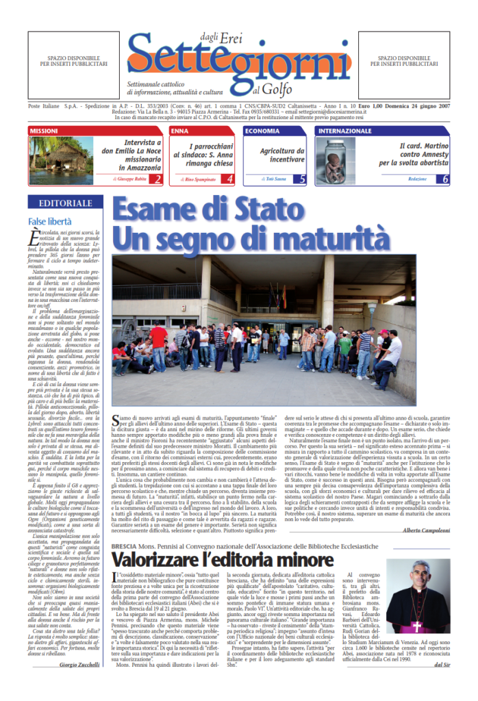 24 Giugno 2007 numeri del settimanale Settegiorni Settegiorni n. 10 del 24 giugno 2007 Clicca qui per leggere il numero in formato PDF CONDIVIDI SU