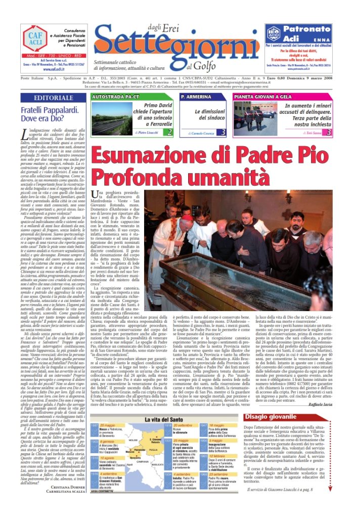 9 Marzo 2008 numeri del settimanale Settegiorni Settegiorni n. 9 del 9 marzo 2008 Clicca qui per leggere il numero in formato PDF CONDIVIDI SU