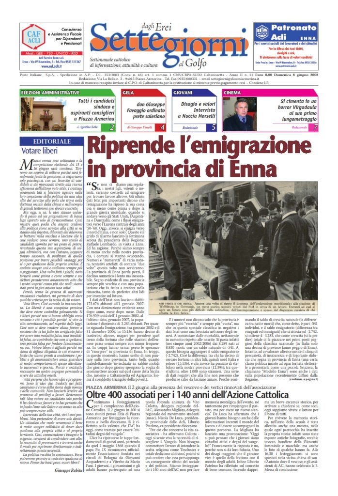 8 Giugno 2008 numeri del settimanale Settegiorni Settegiorni n. 21 dell’8 giugno 2008 Clicca qui per leggere in numero in formato PDF CONDIVIDI SU
