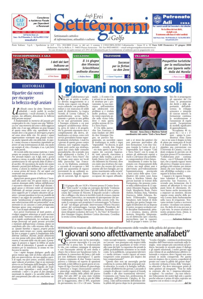 15 Giugno 2008 numeri del settimanale Settegiorni Settegiorni n. 22 del 15 giugno 2008 Clicca qui per leggere il numero in formato PDF CONDIVIDI SU