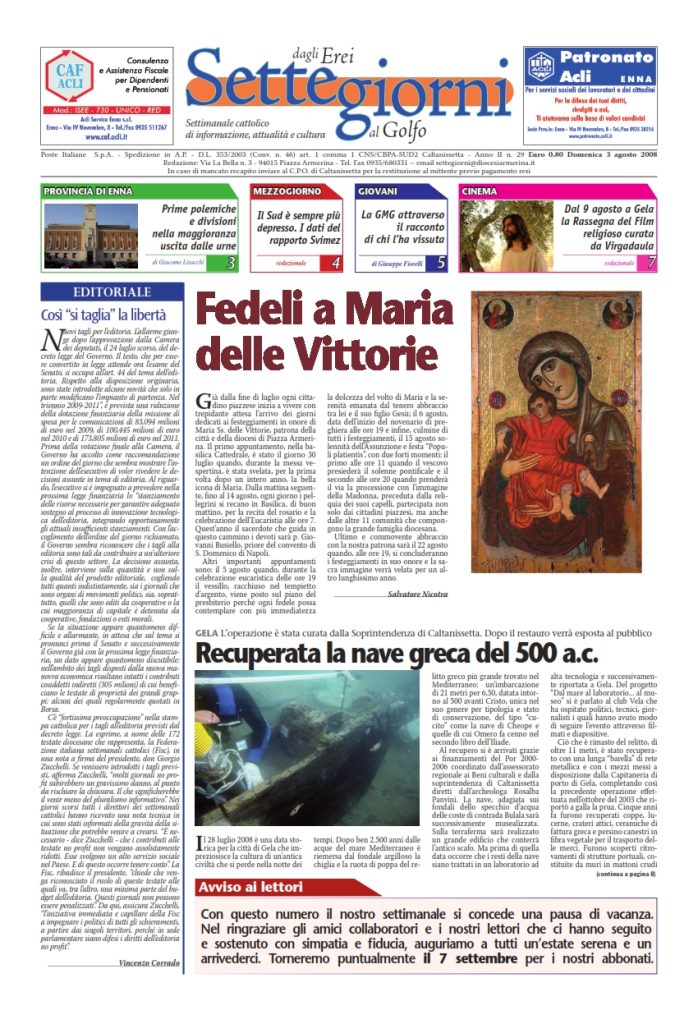 3 Agosto 2008 numeri del settimanale Settegiorni Settegiorni n. 29 del 3 agosto 2008 Clicca qui per leggere il numero in formato PDF CONDIVIDI SU