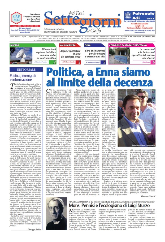 19 Ottobre 2008 numeri del settimanale Settegiorni Settegiorni n. 36 del 19 ottobre 2008 Clicca qui per leggere il numero in formato PDF CONDIVIDI SU