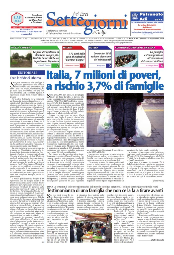 9 Novembre 2008 numeri del settimanale Settegiorni Settegiorni n. 39 del 9 novembre 2008 Clicca qui per leggere il numero in formato PDF CONDIVIDI SU