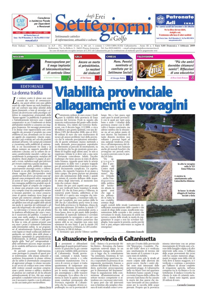 8 Febbraio 2009 numeri del settimanale Settegiorni Settegiorni n. 5 dell’8 febbraio 2009 Clicca qui per leggere il numero in formato PDF CONDIVIDI SU