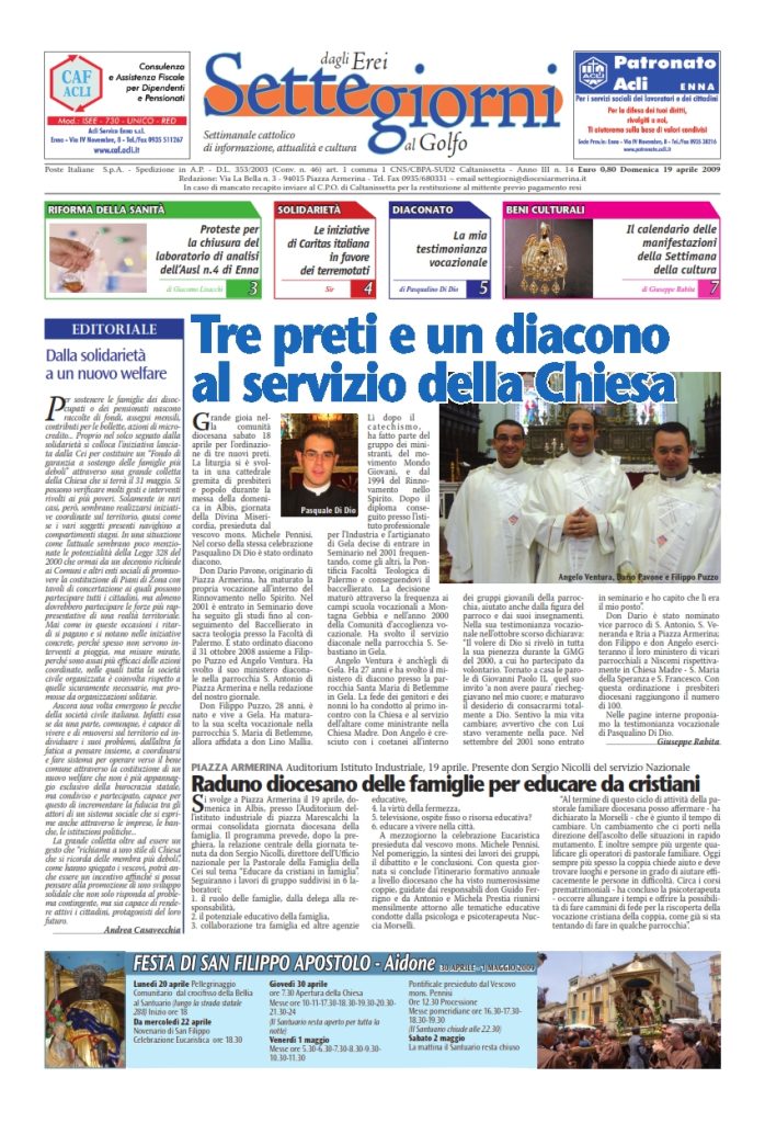 19 Aprile 2009 numeri del settimanale Settegiorni Settegiorni n. 14 del 19 aprile 2009 Clicca qui per leggere il numero in formato PDF CONDIVIDI SU