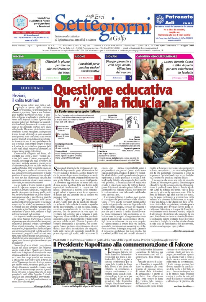 31 Maggio 2009 numeri del settimanale Settegiorni Settegiorni n. 20 del 31 maggio 2009 Clicca qui per leggere il numero in formato PDF CONDIVIDI SU