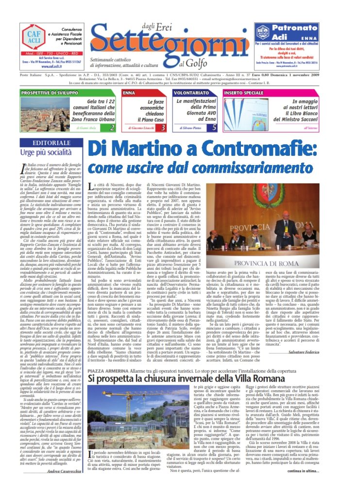 1 Novembre 2009 numeri del settimanale Settegiorni Settegiorni n. 37 dell’1 novembre 2009 Clicca qui per leggere il numero in formato PDF CONDIVIDI SU
