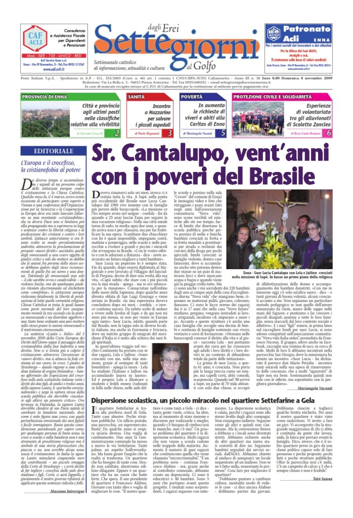 8 Novembre 2009 numeri del settimanale Settegiorni Settegiorni n. 38 dell’8 novembre 2009 Clicca qui per leggere il numero in formato PDF CONDIVIDI SU