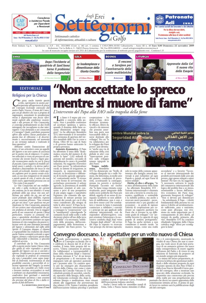 22 Novembre 2009 numeri del settimanale Settegiorni Settegiorni n. 40 del 22 novembre 2009 Clicca qui per leggere il numero in formato PDF CONDIVIDI SU