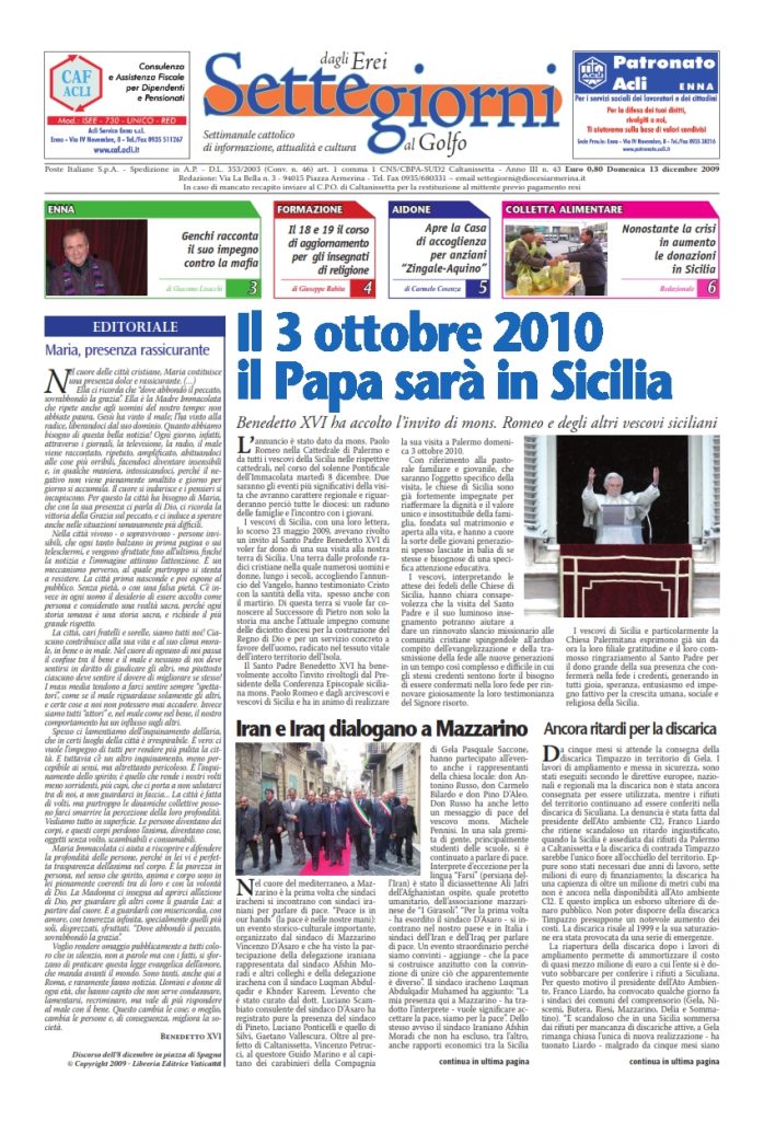 13 Dicembre 2009 numeri del settimanale Settegiorni Settegiorni n. 43 del 13 dicembre 2009 Clicca qui per leggere il numero in formato PDF CONDIVIDI SU