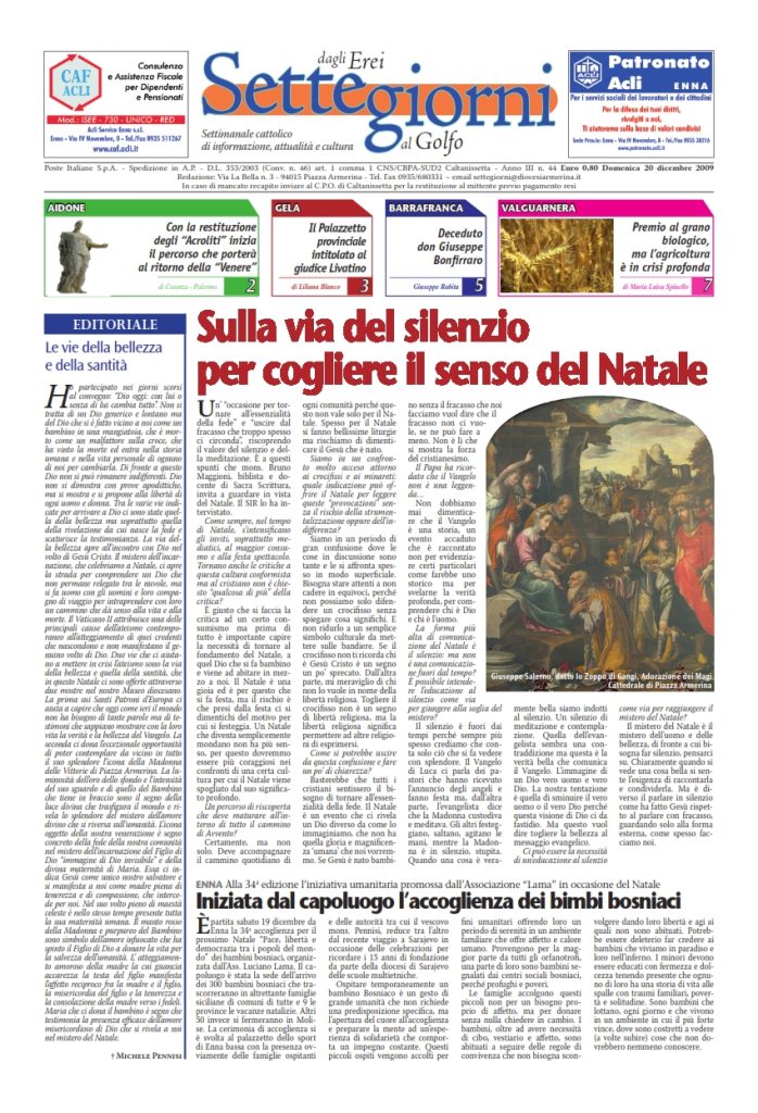 20 Dicembre 2009 numeri del settimanale Settegiorni Settegiorni n. 44 del 20 dicembre 2009 Clicca qui per leggere il numero in formato PDF CONDIVIDI SU