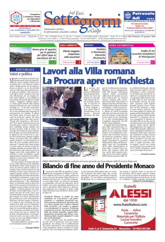 10 Gennaio 2010 numeri del settimanale Settegiorni Settegiorni n. 2 del 10 gennaio 2010 Clicca qui per leggere il numero in formato PDF CONDIVIDI SU