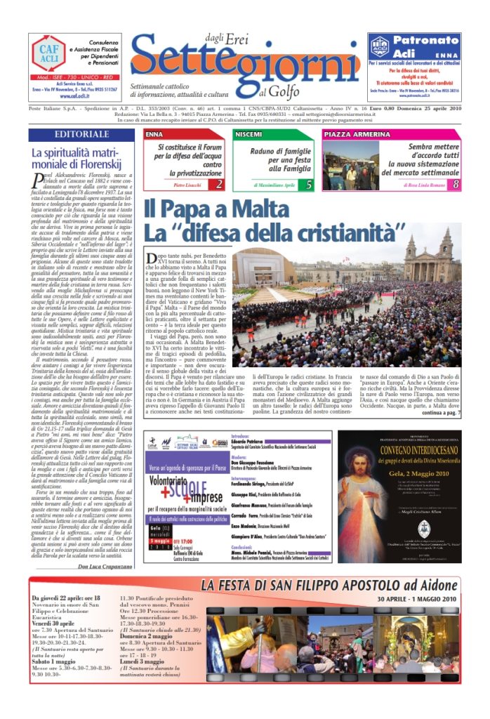 25 Aprile 2010 numeri del settimanale Settegiorni Settegiorni n. 16 del 25 aprile 2010 Clicca qui per leggere il numero in formato PDF CONDIVIDI SU