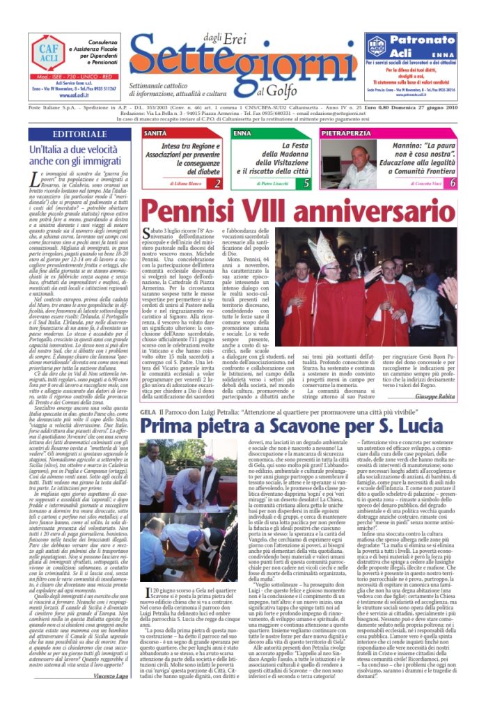 27 Giugno 2010 numeri del settimanale Settegiorni Settegiorni n. 25 del 27 giugno 2010 Clicca qui per leggere il numero i n formato PDF CONDIVIDI SU