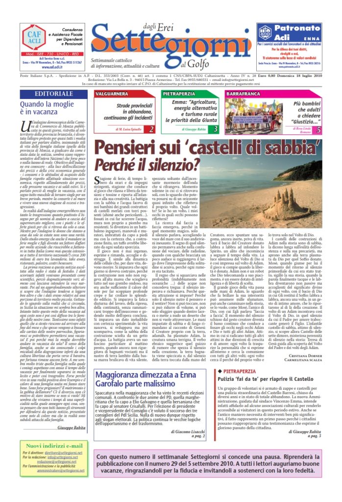 18 Luglio 2010 numeri del settimanale Settegiorni Settegiorni n. 28 del 18 luglio 2010 Clicca qui per leggere il numero in formato PDF CONDIVIDI SU