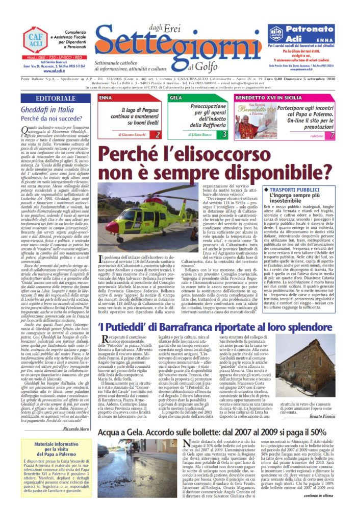 5 Settembre 2010 numeri del settimanale Settegiorni Settegiorni n. 29 del 5 settembre 2010 Clicca qui per leggere il numero in formato PDF CONDIVIDI SU