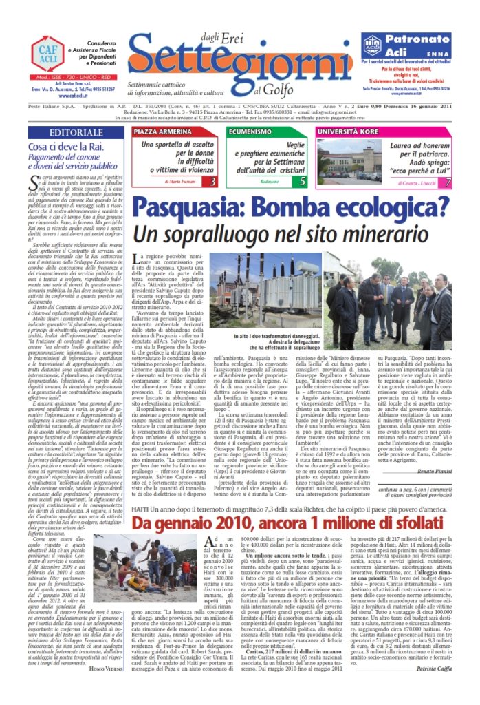 16 Gennaio 2011 numeri del settimanale Settegiorni Settegiorni n. 2 del 16 gennaio 2011 Clicca qui per leggere il numero in formato PDF CONDIVIDI SU