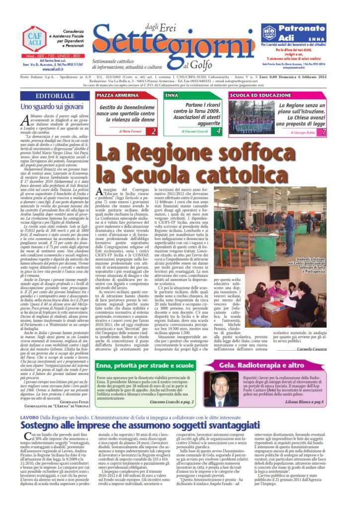 6 Febbraio 2011 numeri del settimanale Settegiorni Settegiorni n. 5 del 6 febbraio 2011 Clicca qui per leggere il numero in formato PDF CONDIVIDI SU