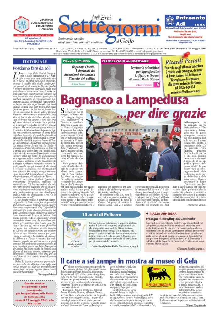 29 Maggio 2011 numeri del settimanale Settegiorni Settegiorni n. 20 del 29 maggio 2011 Clicca qui per leggere il numero in formato PDF CONDIVIDI SU