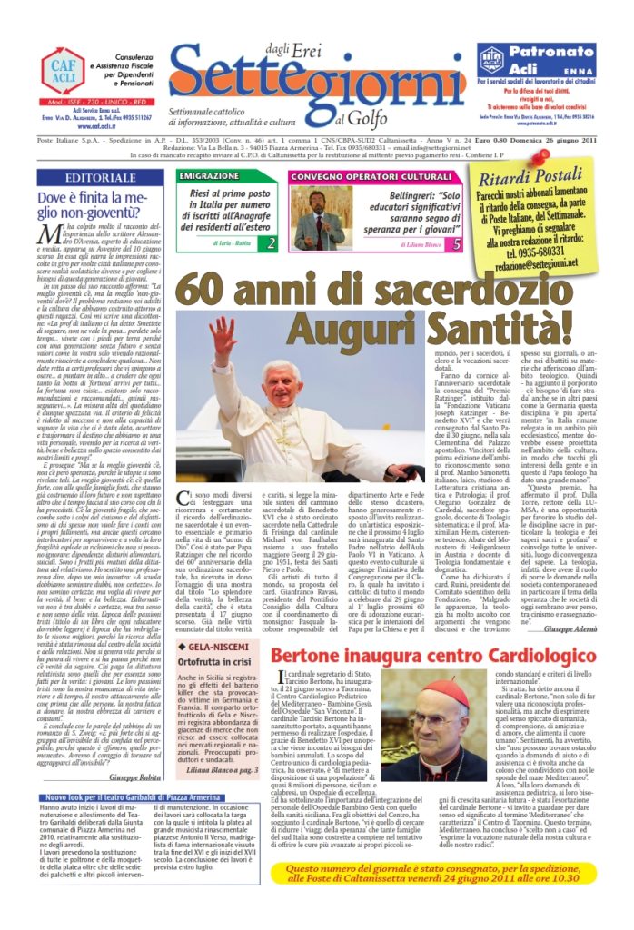 26 Giugno 2011 numeri del settimanale Settegiorni Settegiorni n. 24 del 26 giugno 2011 Clicca qui per leggere il numero in formato PDF CONDIVIDI SU
