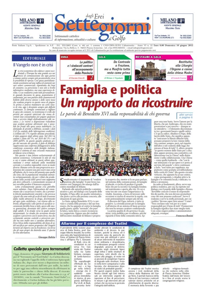 10 Giugno 2012 numeri del settimanale Settegiorni Settegiorni n. 22 del 10 giugno 2012 Clicca qui per leggere il numero in formato PDF CONDIVIDI SU