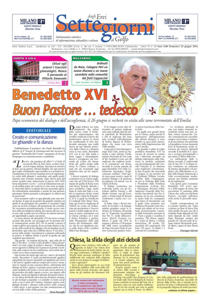 24 Giugno 2012 numeri del settimanale Settegiorni Settegiorni n. 24 del 24 giugno 2012 Clicca qui per leggere il numero in formato PDF CONDIVIDI SU