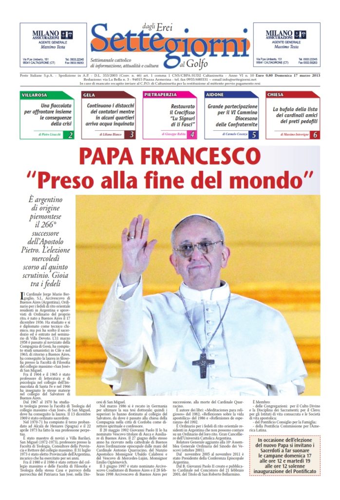17 Marzo 2013 numeri del settimanale Settegiorni Settegiorni n. 10 del 17 marzo 2013 Clicca qui per leggere il numero in formato PDF CONDIVIDI SU
