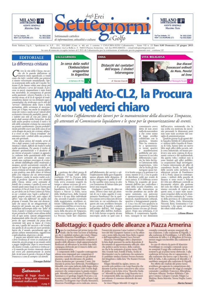 23 Giugno 2013 numeri del settimanale Settegiorni Settegiorni n. 23 del 23 giugno 2013 Clicca qui per leggere il numero in formato PDF CONDIVIDI SU