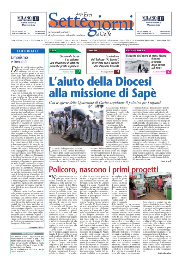 1 Settembre 2013 numeri del settimanale Settegiorni Settegiorni n. 28 dell’1 settembre 2013 Clicca qui per leggere il numero in formato PDF CONDIVIDI SU