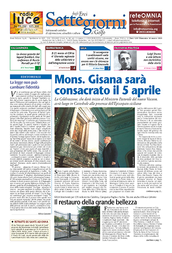 16 Marzo 2014 numeri del settimanale Settegiorni Settegiorni n. 10 del 16 marzo 2014 Clicca qui per leggere il numero in formato PDF CONDIVIDI SU