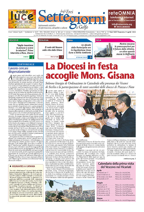6 Aprile 2014 numeri del settimanale Settegiorni Settegiorni n. 13 del 6 aprile 2014 Clicca qui per leggere il numero in formato PDF CONDIVIDI SU