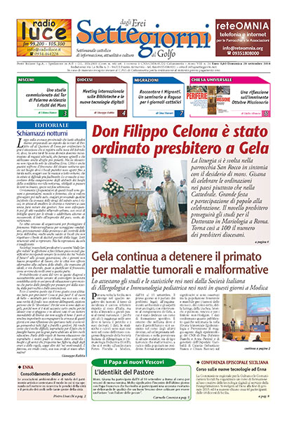 28 Settembre 2014 numeri del settimanale Settegiorni Settegiorni n. 31 del 28 settembre 2014 Clicca qui per leggere il numero in formato PDF CONDIVIDI SU