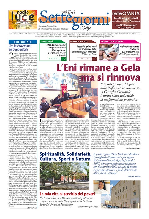 2 Novembre 2014 numeri del settimanale Settegiorni Settegiorni n. 36 del 2 novembre 2014 Clicca qui per leggere il numero in formato PDF CONDIVIDI SU