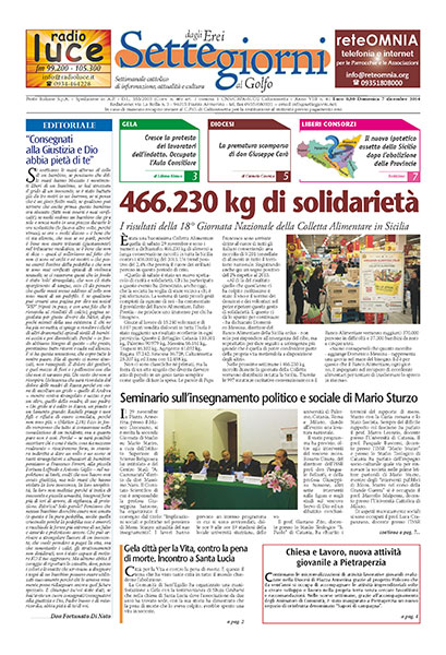 7 Dicembre 2014 numeri del settimanale Settegiorni Settegiorni n. 41 del 7 dicembre 2014 Clicca qui per leggere il numero in formato PDF CONDIVIDI SU