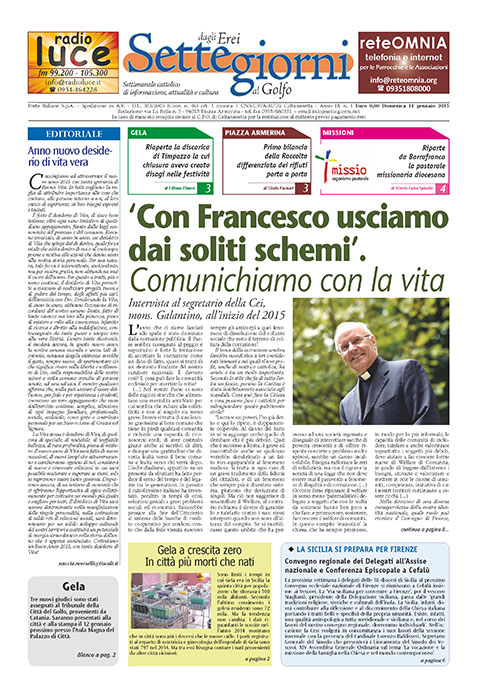 11 Gennaio 2015 numeri del settimanale Settegiorni Settegiorni n. 1 dell’11 gennaio 2015 Clicca qui per leggere il numero in formato PDF CONDIVIDI SU