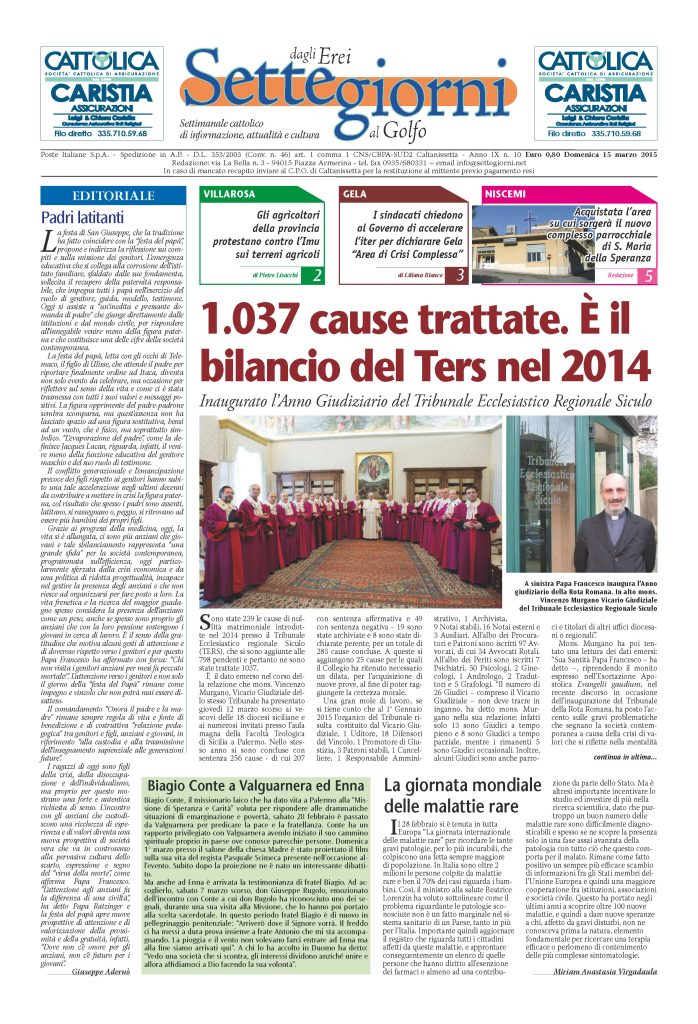 15 Marzo 2015 numeri del settimanale Settegiorni Settegiorni n. 10 del 15 marzo 2015 Clicca qui per leggere il numero in formato PDF CONDIVIDI SU