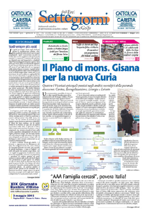 3 Maggio 2015 numeri del settimanale Settegiorni Settegiorni n. 16 del 3 maggio 2015 Clicca qui per leggere il numero in formato PDF CONDIVIDI SU