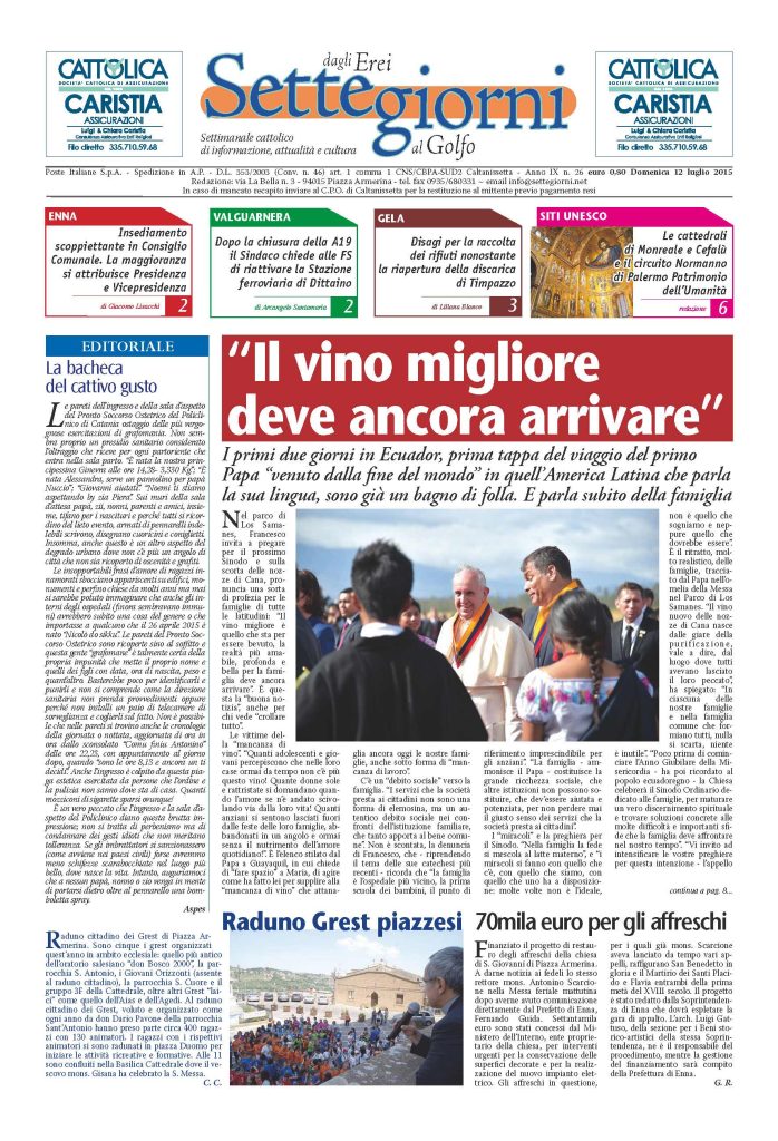 12 Luglio 2015 numeri del settimanale Settegiorni Settegiorni n. 26 del 12 luglio 2015 Clicca qui per leggere il numero in formato PDF CONDIVIDI SU