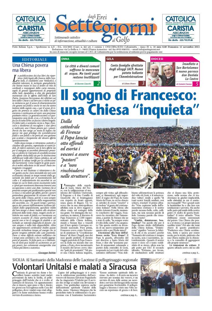 15 Novembre 2015 numeri del settimanale Settegiorni Settegiorni n. 38 del 15 novembre 2015 CONDIVIDI SU
