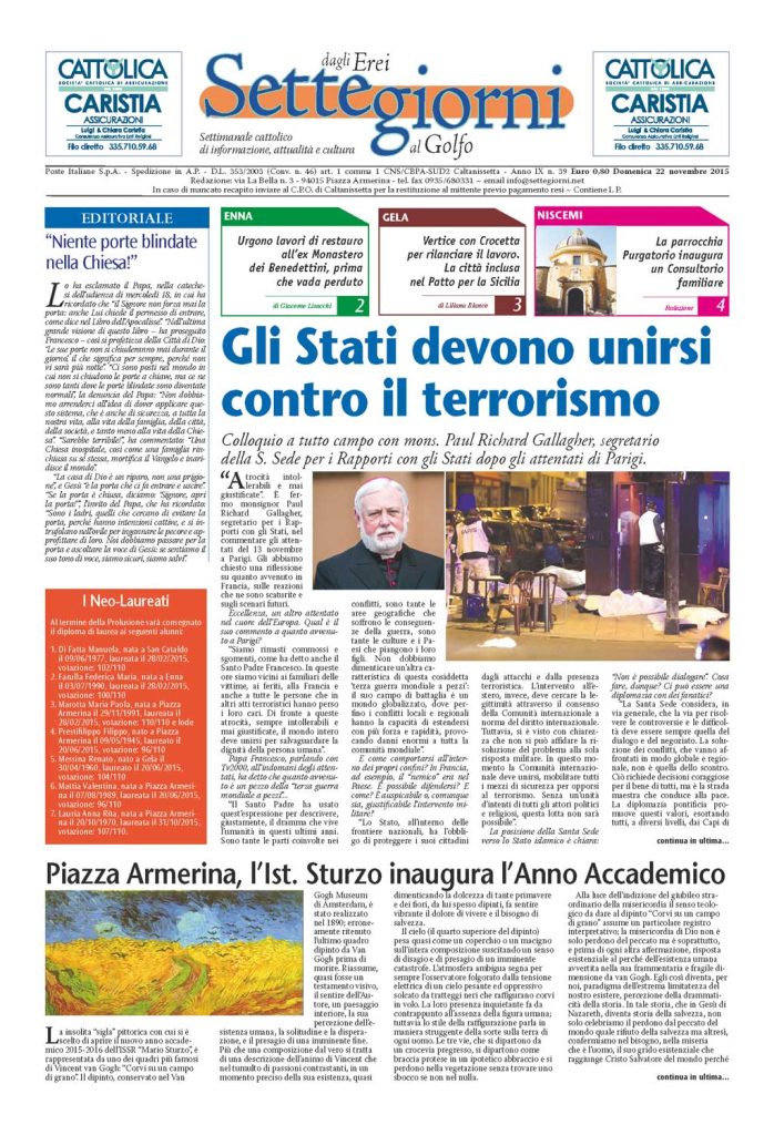 22 Novembre 2015 numeri del settimanale Settegiorni Settegiorni n. 39 del 22 novembre 2015 Clicca qui per leggere il numero in formato PDF CONDIVIDI SU