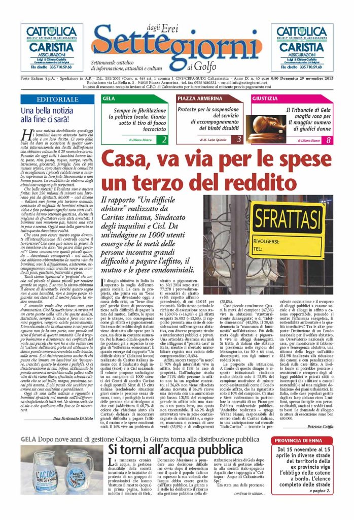 29 Novembre 2015 numeri del settimanale Settegiorni Settegiorni n. 40 del 29 novembre 2015 Clicca qui per leggere il numero in formato PDF CONDIVIDI SU