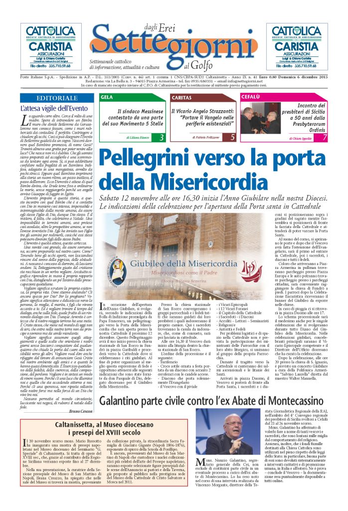 6 Dicembre 2015 numeri del settimanale Settegiorni Settegiorni n. 41 del 6 dicembre 2015 Clicca qui per leggere il numero in formato PDF CONDIVIDI SU