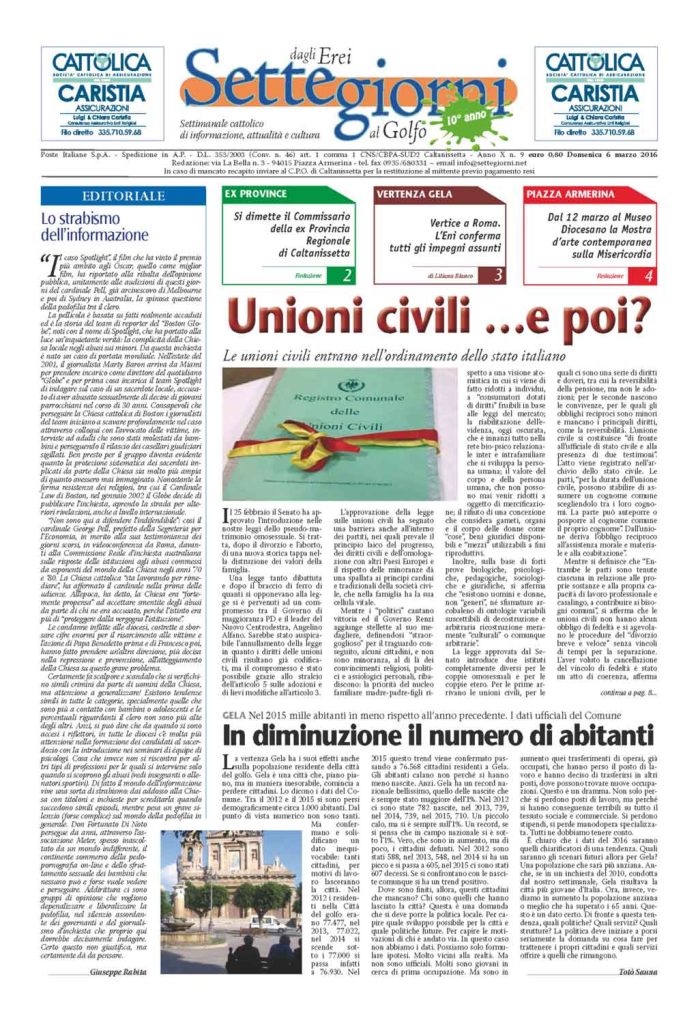 6 Marzo 2016 numeri del settimanale Settegiorni Settegiorni n. 9 del 6 marzo 2016 Clicca qui per leggere il numero in formato PDF CONDIVIDI SU