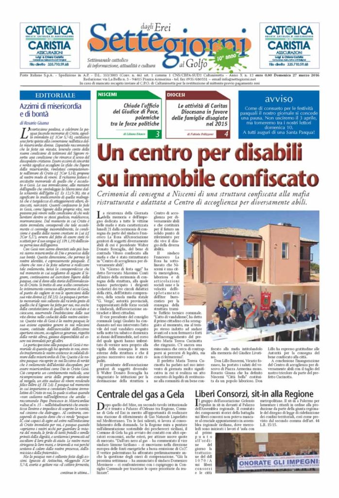 27 Marzo 2016 numeri del settimanale Settegiorni Settegiorni n. 12 del 27 marzo 2016 Clicca qui per leggere il numero in formato PDF CONDIVIDI SU