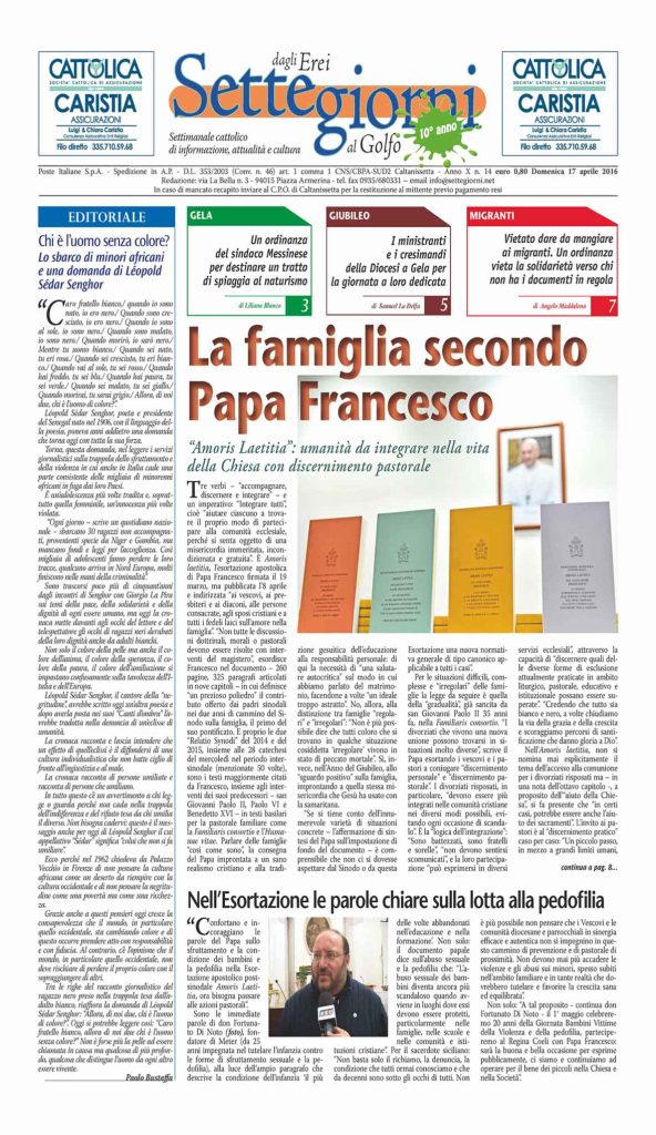 17 Aprile 2016 numeri del settimanale Settegiorni Settegiorni n. 14 del 17 aprile 2016 Clicca qui per leggere il numero in formato PDF CONDIVIDI SU