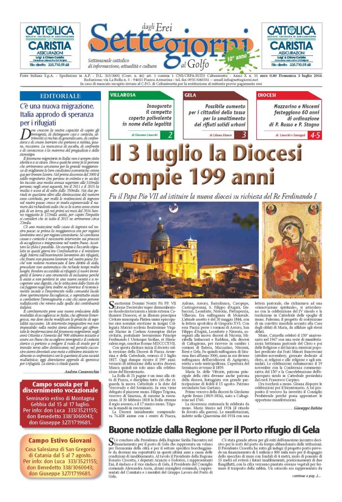 3 Luglio 2016 numeri del settimanale Settegiorni Settegiorni n. 25 del 3 luglio 2016 Clicca qui per leggere il numero in formato PDF CONDIVIDI SU