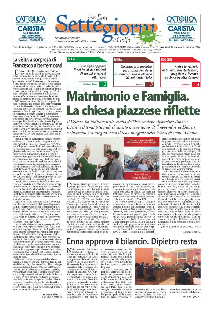 9 Ottobre 2016 numeri del settimanale Settegiorni Settegiorni n. 33 del 9 ottobre 2016 Clicca qui per leggere il numero in formato PDF CONDIVIDI SU