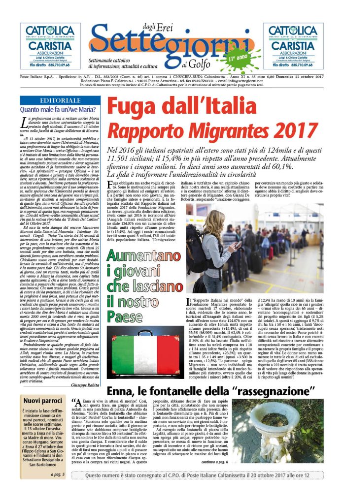 22 Ottobre 2017 numeri del settimanale Settegiorni Settegiorni n. 35 del 22 ottobre 2017 Clicca qui per leggere il numero in formato PDF CONDIVIDI SU