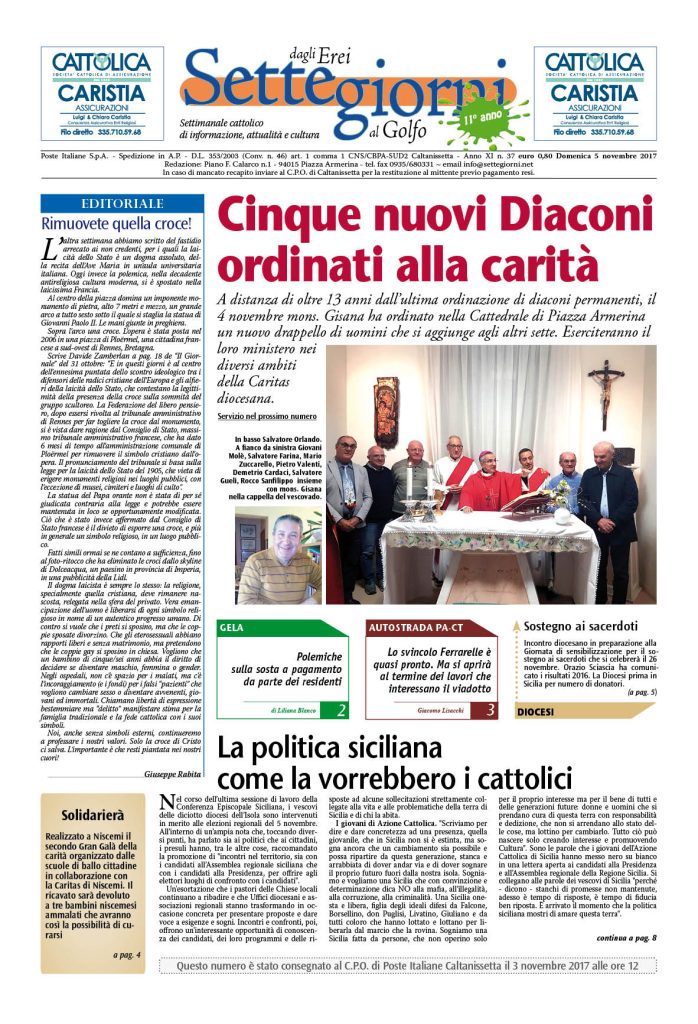 5 Novembre 2017 numeri del settimanale Settegiorni Settegiorni n. 37 del 5 novembre 2017 Clicca qui per leggere il numero in formato PDF CONDIVIDI SU
