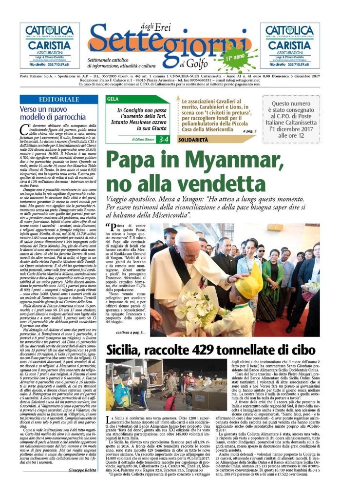 3 Dicembre 2017 numeri del settimanale Settegiorni Settegiorni n. 41 del 3 dicembre 2017 Clicca qui per leggere il numero in formato PDF CONDIVIDI SU